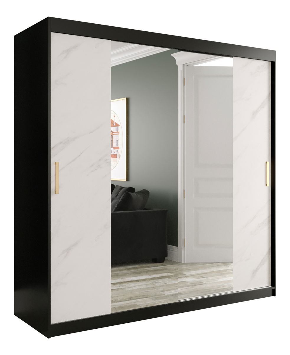 Ormar za garderobu 200 cm Marbelo T1 (crna mat + bijeli mramor)