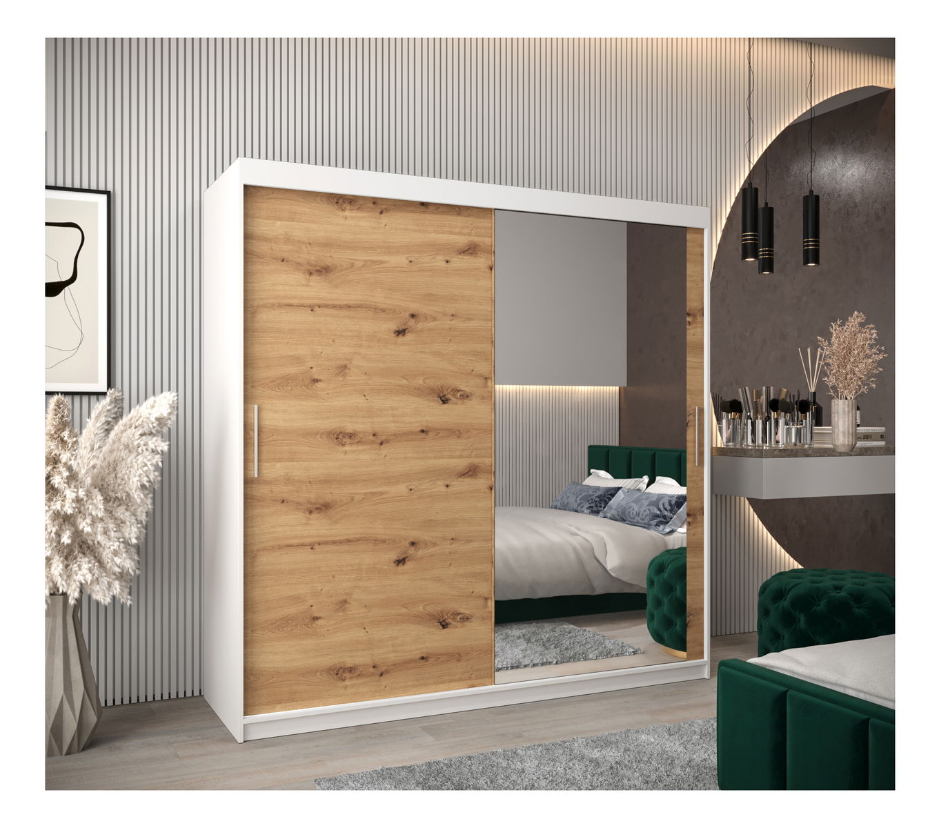 Ormar za garderobu 200 cm Toki 2 (bijela mat + hrast artisan)