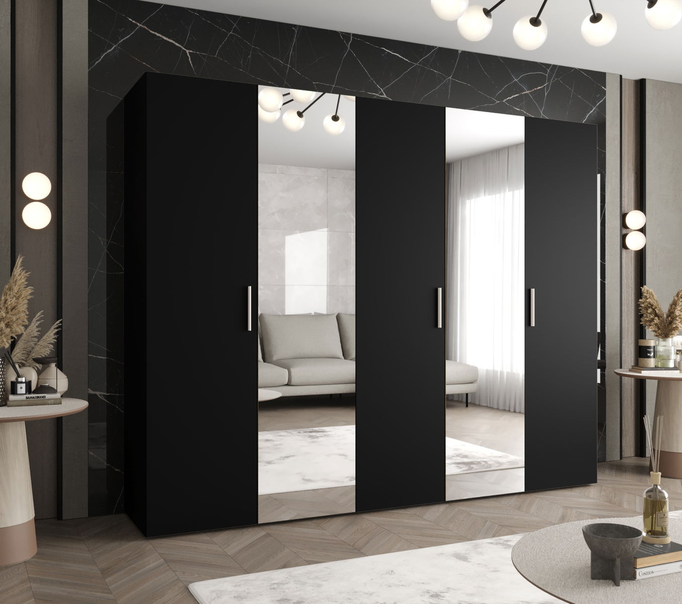 Ormar za garderobu 250 cm Borry 2 (crna + srebrna)
