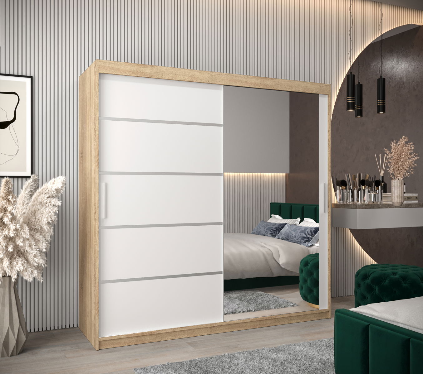Ormar za garderobu 250 cm s ogledalom Verika 2 250 (hrast sonoma + bijela)