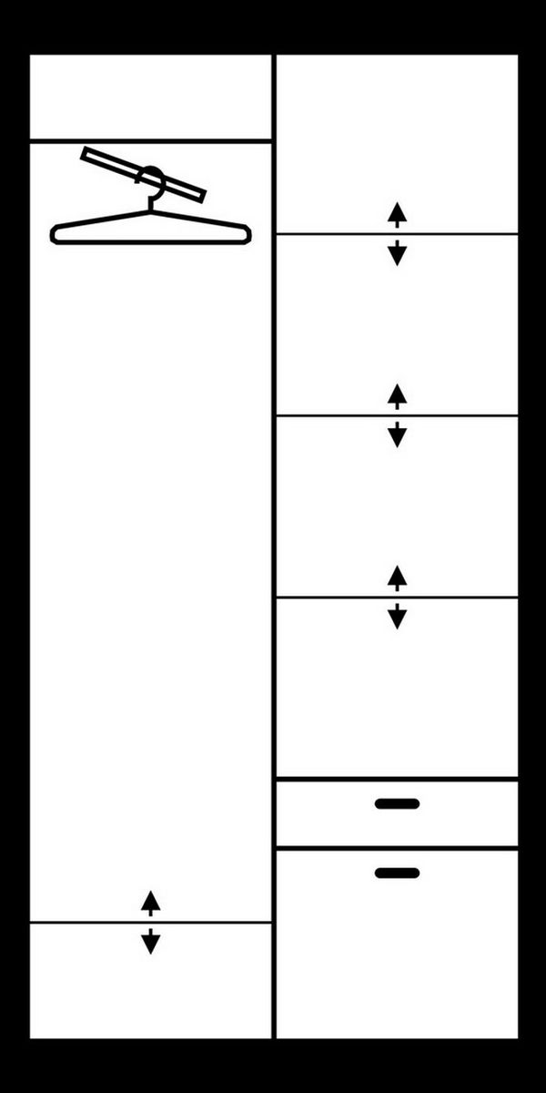 Dvodijelni garderobni ormar s kliznim vratima u boji johe i bukve.
