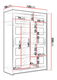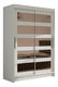 iverica laminirana 16 mm,sustav kliznih vrata,aluminijske vodilice tipa Micra poljske tvrtke Sevroll,vodoravno dimno ogledalo na vratima,rubovi završeni ABS trakom,unutrašnjost ormara podijeljena na dva jednaka dijela,šipka – držač za vješalice i 3 police,LED RGB rasvjeta može se dodatno naručiti uz nadoplatu.