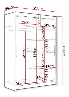 Ormar je idealan izbor za one koji traže udobnost i stil. Dimenzije: širina: 120 cm, visina: 200 cm, dubina: 58 cm Boje: mogućnost odabira boja ovdje Izrađeno: laminirana iverica 16 mm, rubovi obrađeni ABS trakom, sustav kliznih vrata, aluminijske vodilice tipa Micra poljske tvrtke Sevroll, ogledalo, opremljen šipkom i prostranim policama, LED RGB rasvjetu moguće je naručiti uz nadoplatu Jamstveno razdoblje: 24 mjeseca.