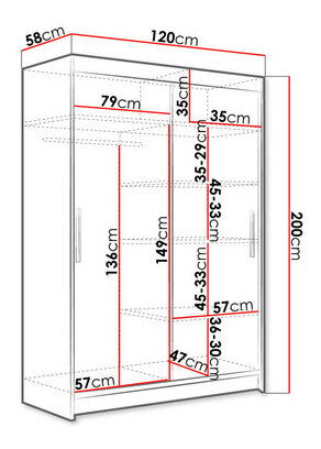 širina: 120 cm, visina: 200 cm, dubina: 58 cm