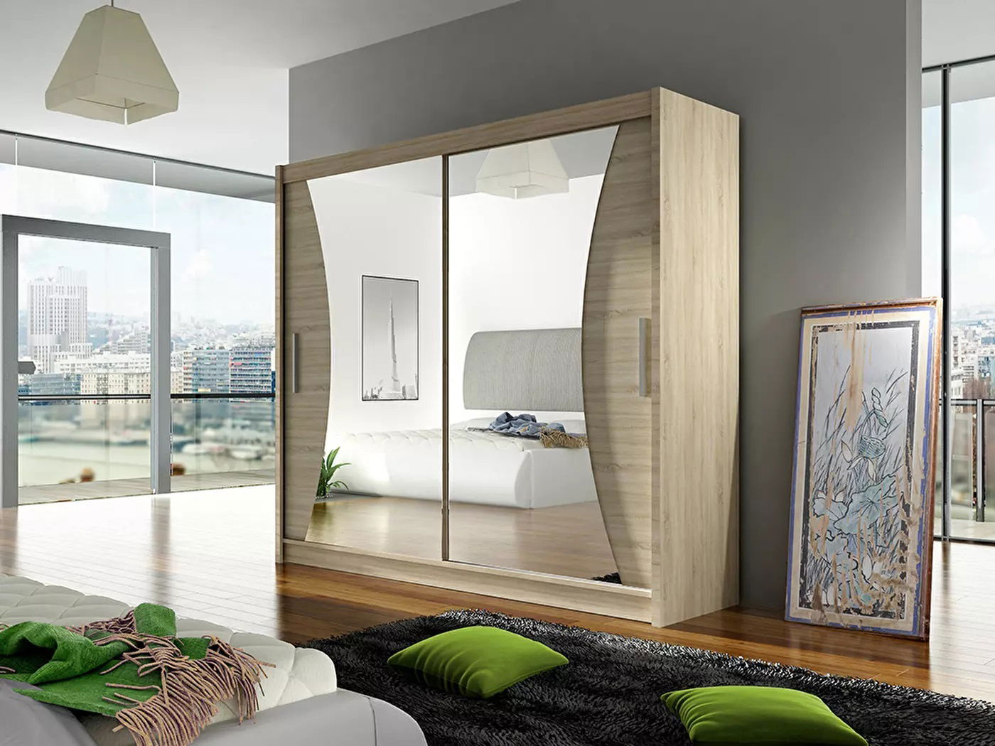 Ormar Bega V ima jednostavan dizajn, ali njegovu eleganciju naglašava oblikovano ogledalo u sredini. Klizna vrata otkrivaju puno prostora za spremanje odjeće i ostalog pribora. U lijevom dijelu ormarića nalazi se šipka za vješanje, a desno su police. U gornjem dijelu nalazi se i dio za odlaganje. Ormar Bega V je boje sonoma hrasta. Sustav kliznih vrata osigurat će udobnost i udobnu svakodnevnu upotrebu. Kruto montirane vodilice omogućit će jednostavno i glatko otvaranje ormara.