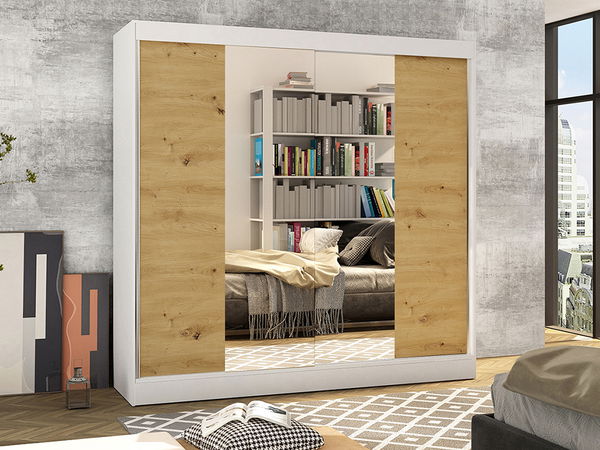 Ormar za garderobu Birdie 2 (bijela + artisan)