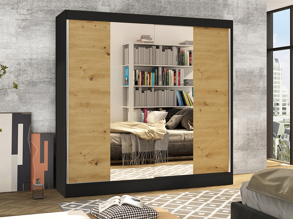 Ormar za garderobu Birdie 2 (crna + artisan)