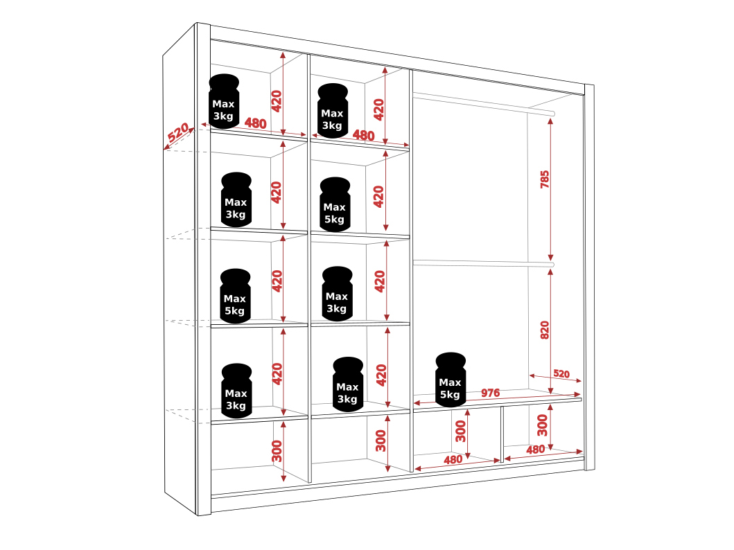 209,5x55,5x4,5 cm/35 kg