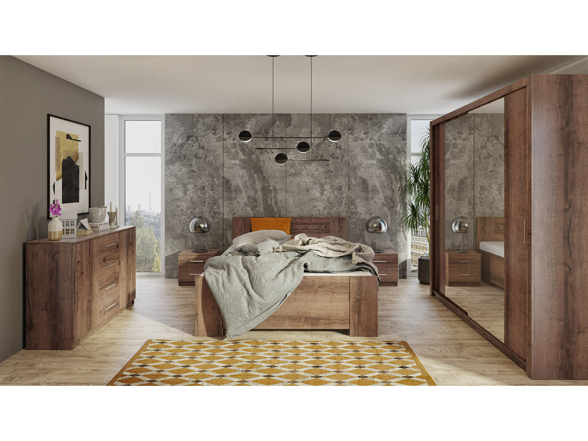 Ormar za garderobu Bonaparte SZ200 (hrast monastery) (s ogledalom)