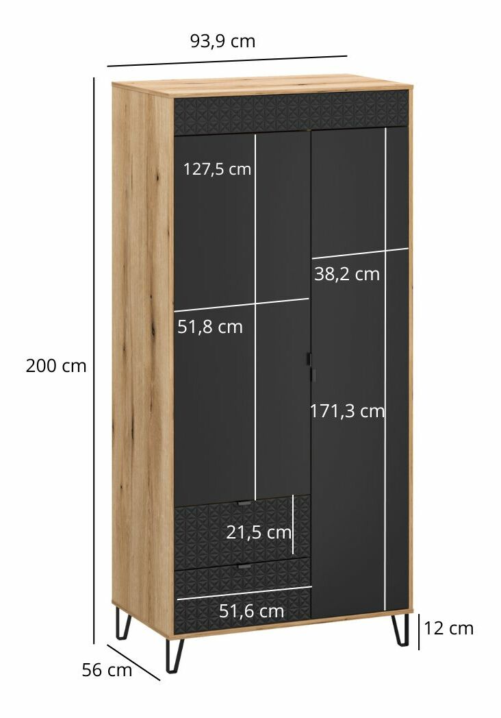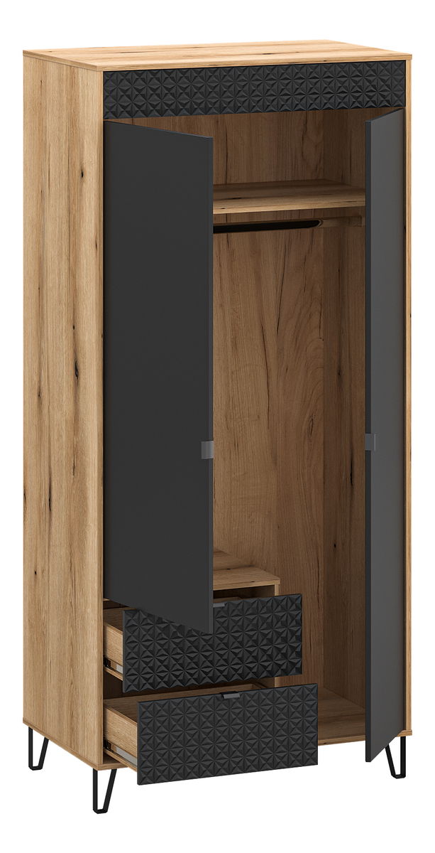 Ormar za garderobu Botones 1 (hrast evoke + crna)