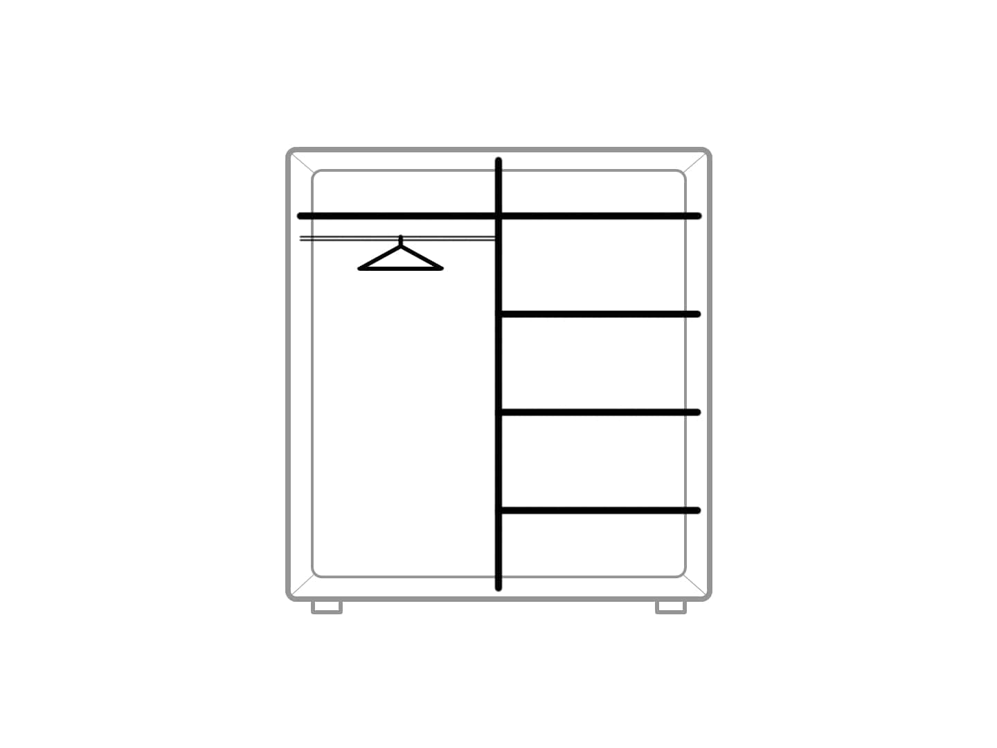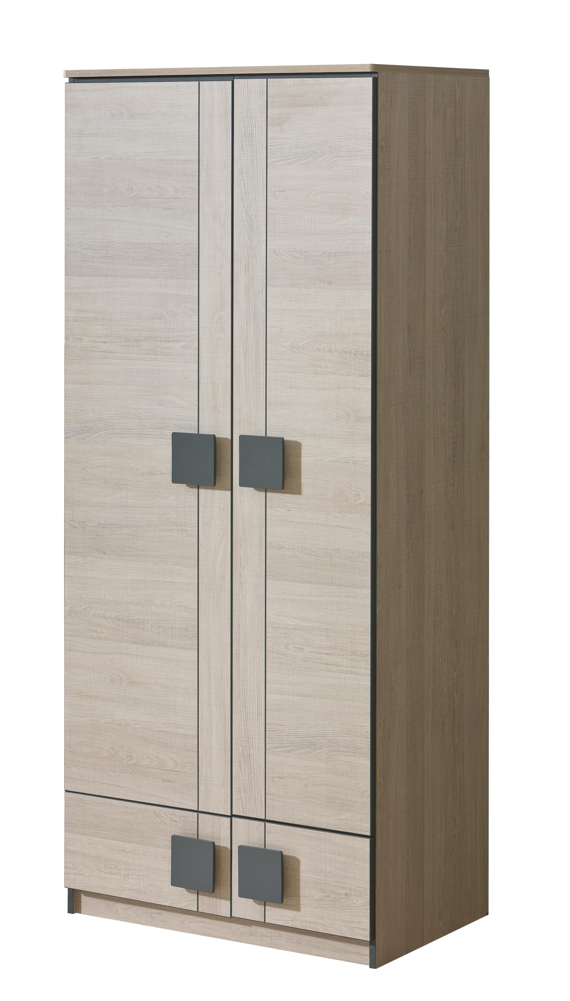 Prostran garderobni ormar s modernim dizajnerskim elementima pružit će vam dovoljno prostora za odlaganje. U ormaru se nalazi i šipka za vješanje odjeće.