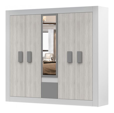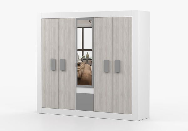 Ormar za garderobu Hyllo (bijela + kathult + grafit + ogledalo)