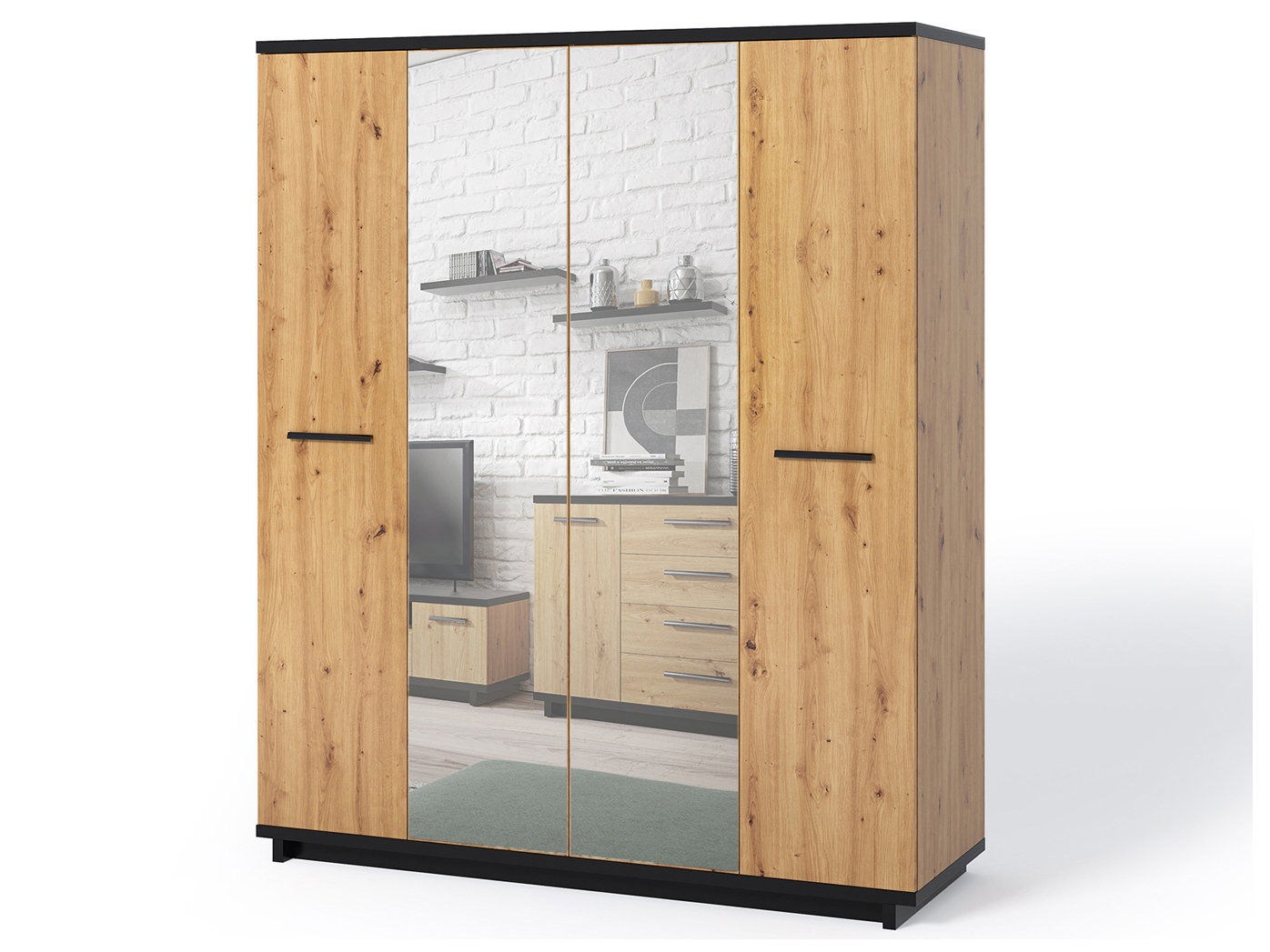 Ormar za garderobu Indi SZ4D (hrast artisan + crna mat + hrast artisan)