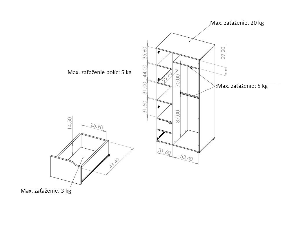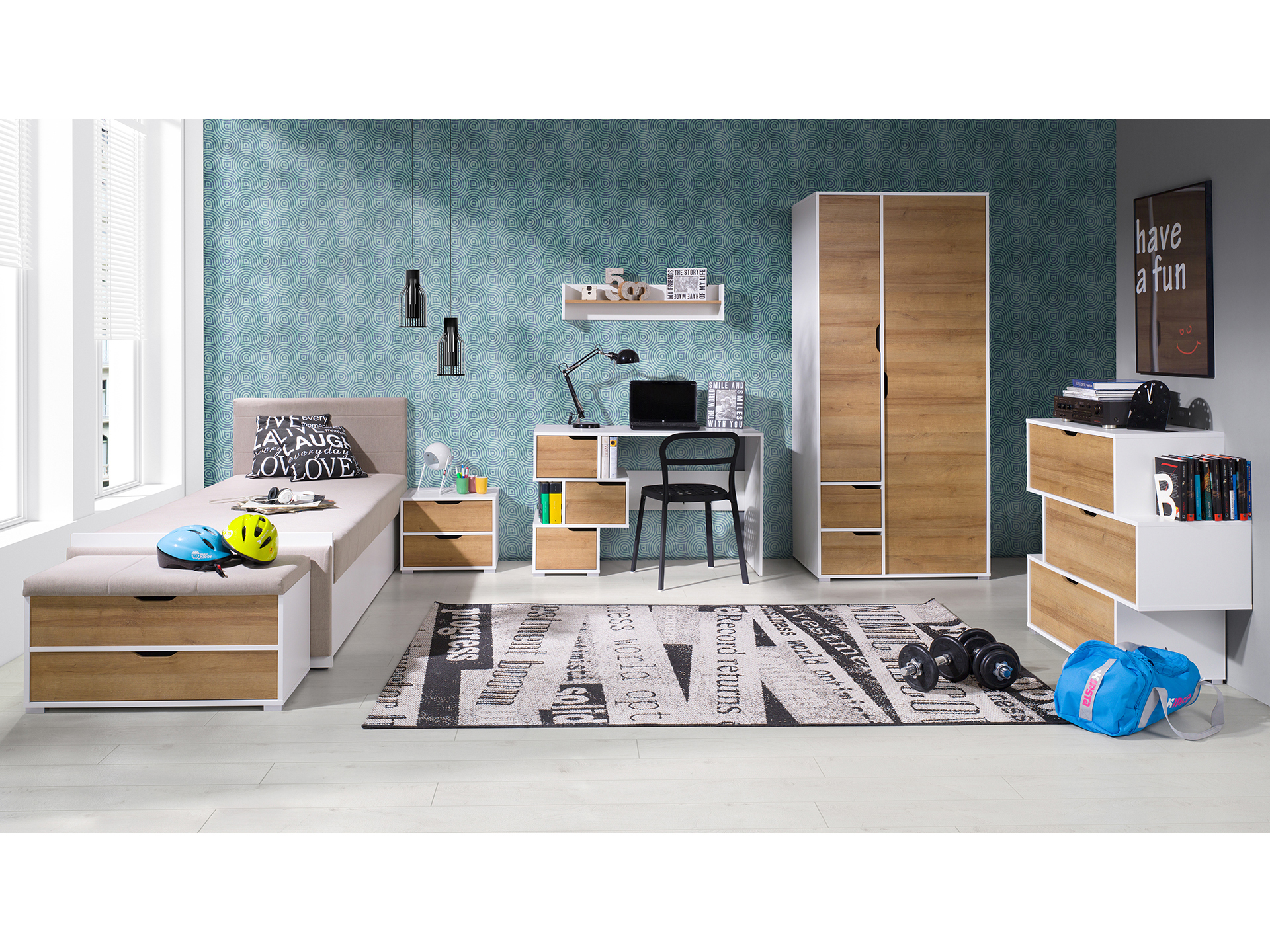 Ormar za garderobu Iweta SZ2D (bijela mat + hrast zlatni)