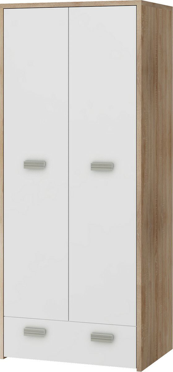 Dvodijelan ormar dubine 57 cm. Na dnu se nalazi jedna široka ladica, a nad njom je prostor sakriven vratima i sivim ručkama.