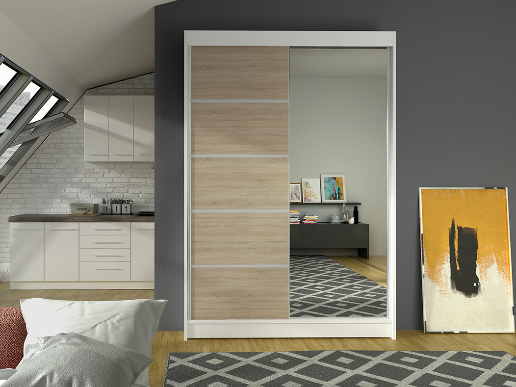 Ormar za garderobu Lawana 3 (bijela + sonoma)