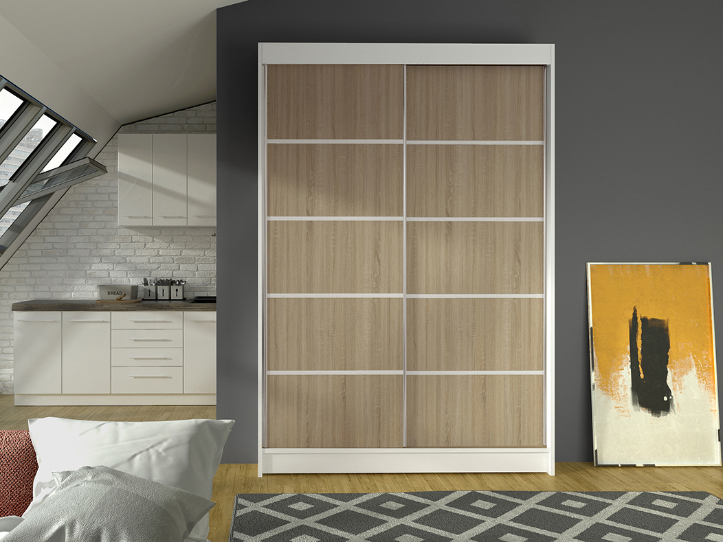 Ormar za garderobu Lawana 4 (bijela + sonoma)