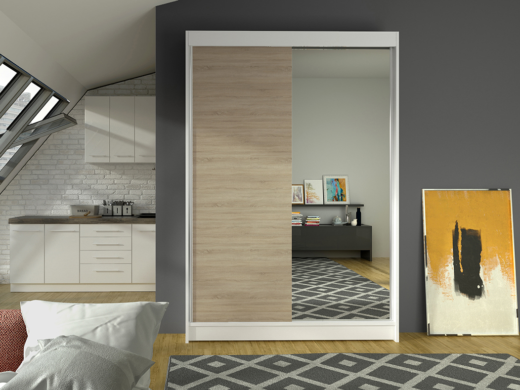 Ormar za garderobu Lawana (bijela + sonoma)