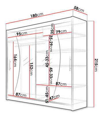 PrikazOrmar je idealan izbor za one koji traže udobnost i stil. Dimenzije: širina: 180 cm, visina: 215 cm, dubina: 57 cm. Boje: mogućnost izbora boja ovdje. Izrađeno: laminirana iverica 16 mm, sustav kliznih vrata, aluminijske letvice, vodilice od firme Sevroll, sustav Micra, ogledalo, LED RGB rasvjeta dostupna uz nadoplatu. Jamstvo: 24 mjeseca.
