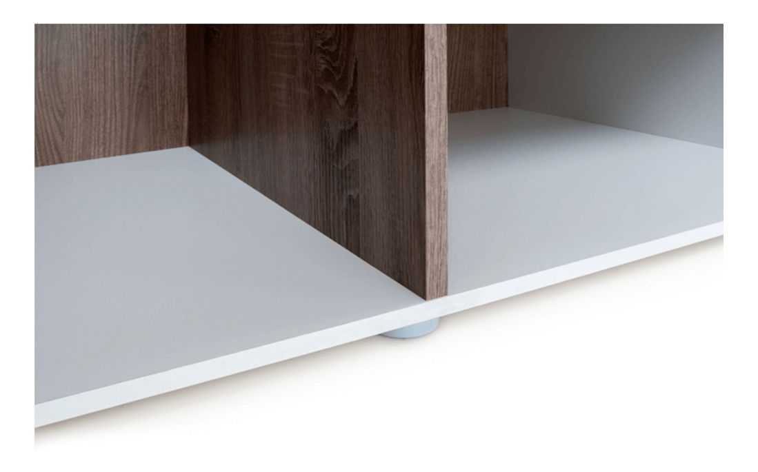 Luksuzan namještaj izrađen od laminirane iverice otporne na ogrebotine, vlagu i visoke temperature. Prednji dijelovi su izrađeni od MDF ploče bijele boje s visokim sjajem HG. Moguće je dokupiti LED rasvjetu.