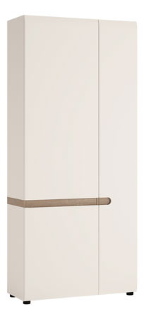 Garderobni ormar izrađen od iverice. Prednji dijelovi su od MDF ploče vrlo visokog bijelog sjaja s elementima smeđe boje. Korpus je bijele boje.