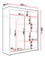 Laminirana ploča debljine 16 mm, svi elementi su mat, rubovi su finiširani PVC furnirom, ručka u obliku aluminijske trake, aluminijske ručke duž vrata koje sprječavaju njihovo savijanje, sistem kliznih vrata, ogledalo na prednjoj strani, Sevroll aluminijska stakla , ormar opremljen šipkom i prostranim policama