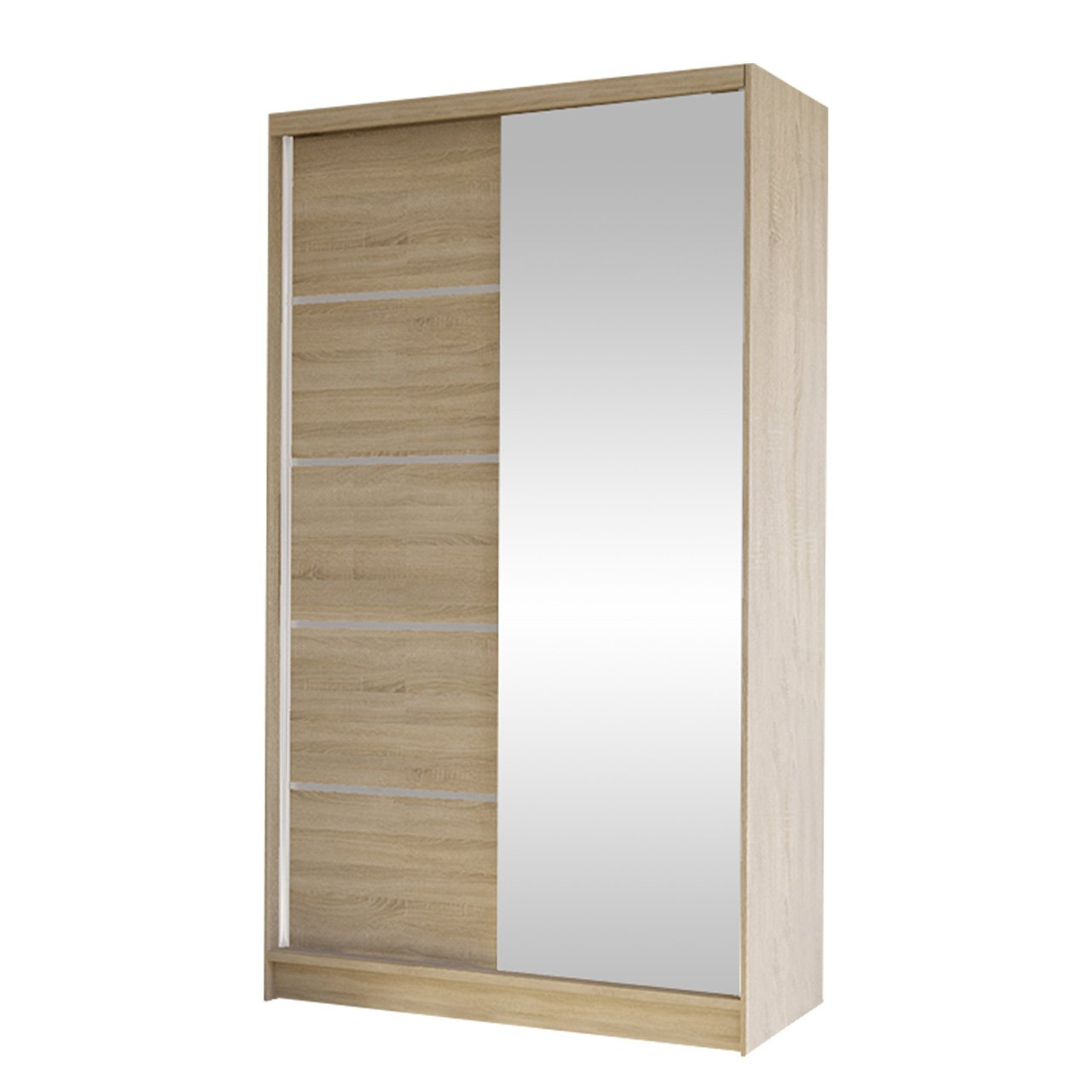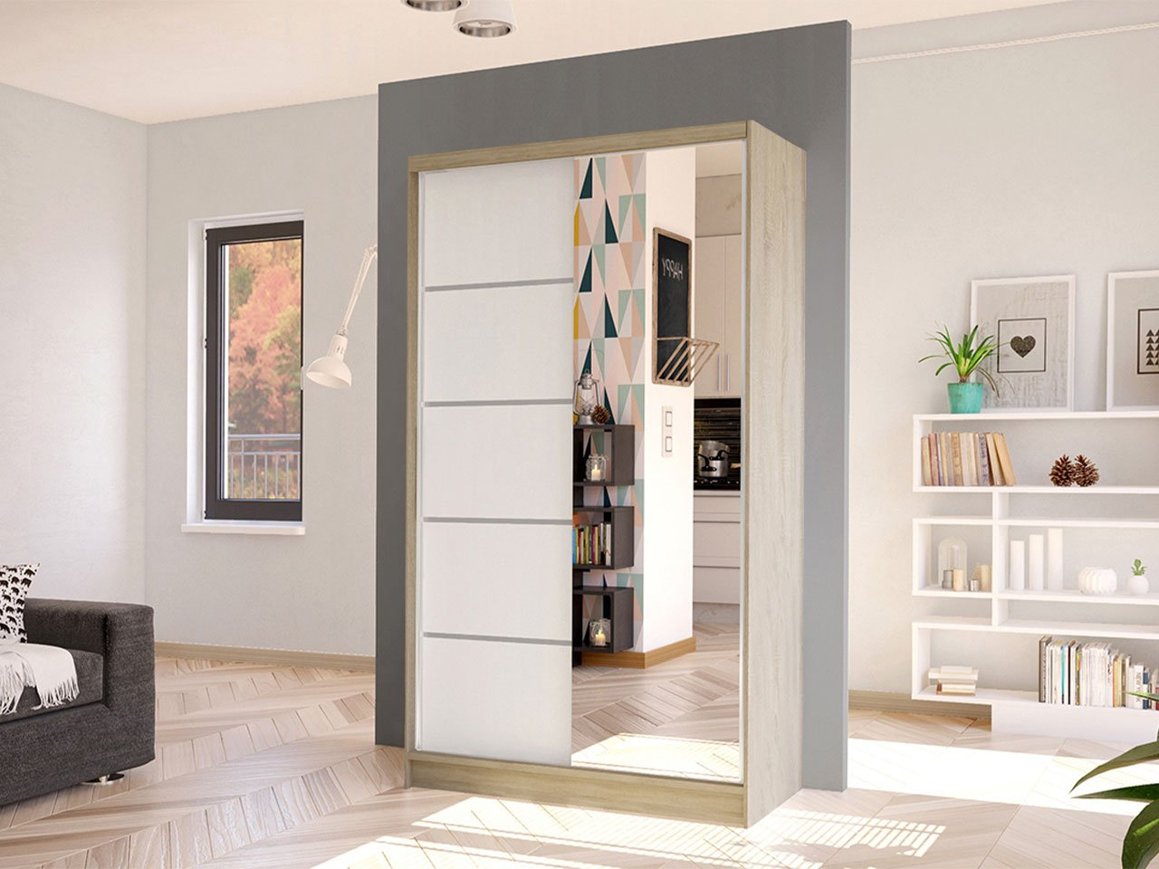PrikazOrmar za sobu je idealan izbor za one koji traže udobnost i stil. Prostrani ormar s kliznim vratima dio je mnogih spavaćih soba. Trebao bi izgledati stilski, ali prije svega biti praktičan. Ormar Masero III gotovo će uvijek biti pun pogodak, bez obzira kamo ga smjestili. Zahvaljujući modernom dizajnu i modernim, univerzalnim bojama, ormar će se uklopiti u mnoge interijere. Ne smijemo zaboraviti na veliko ogledalo koje će nam olakšati svakodnevno odijevanje. Zahvaljujući njemu bit će mnogo jednostavnije odlučiti što odjenuti tog dana. Istovremeno, ogledalo će vizualno povećati i posvijetliti prostor. I unutrašnjost ima čime da se pohvali! Tu je mnogo širokih i dubokih polica za svu odjeću i ručnike. Gornji dio ormara poslužit će kao mjesto za dodatne predmete iz kuće, za koje nismo pronašli prostor u drugom namještaju. Klizni ormar s ogledalom ima i poseban prostor sa šipkom, koji je uvijek praktičan za košulje i drugu odjeću na vješalicama. Dimenzije: širina: 100 cm, visina: 200 cm, dubina: 58 cm. Izvedba: laminirana ploča debljine 16 mm, svi elementi mat, rubovi završeni PVC furnirom, ručka u obliku aluminijske trake, aluminijske letvice duž vrata koje sprječavaju njihovo savijanje, sustav kliznih vrata, ogledalo na prednjoj strani, aluminijski vodilice Sevroll, ormar opremljen šipkom i prostranim policama. Jamstvo: 24 mjeseca.