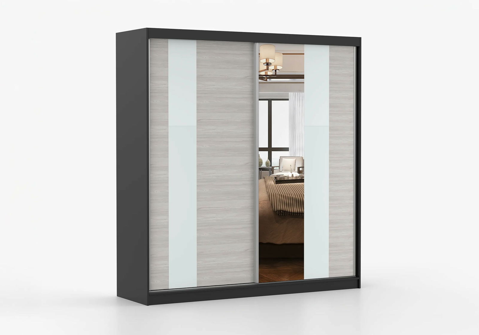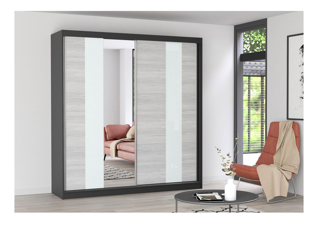 Ormar za garderobu Mebur 32 200 (crna + kathult + bijelo staklo + ogledalo)
