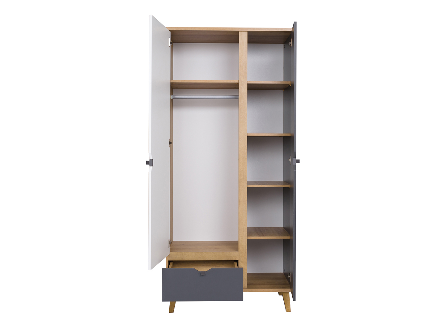 Ormar za garderobu Mimone SZ2D1SZ (hrast zlatni + bijela mat + grafit)