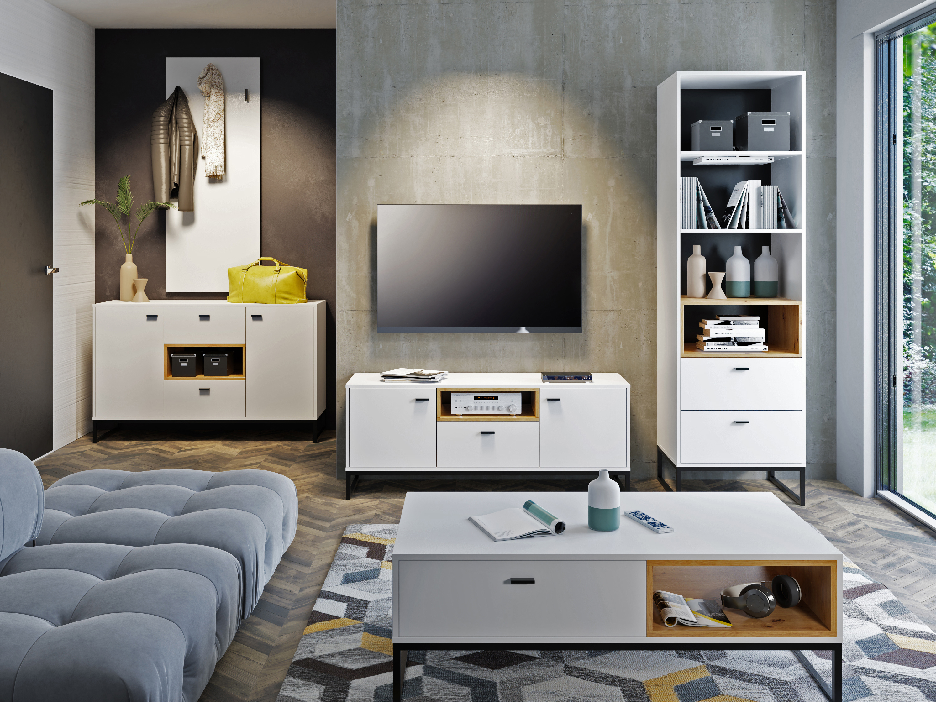 Bijela + Hrast artisan