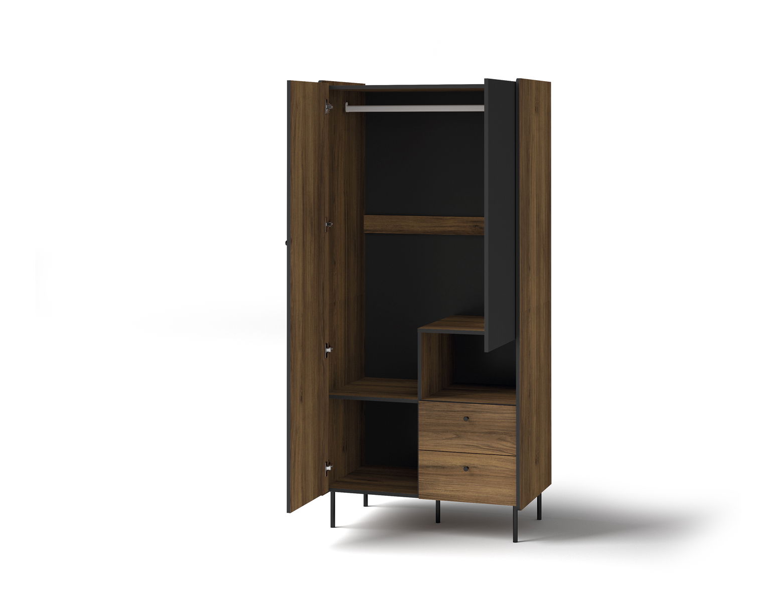 Ormar za garderobu Phelan P1 (orah warmia + crna)