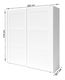 Ravette je dvodijelni ormar s kliznim vratima izrađen od laminirane iverice bijele boje. Ima dvije široke police u gornjem dijelu i četiri uže police s obje strane.