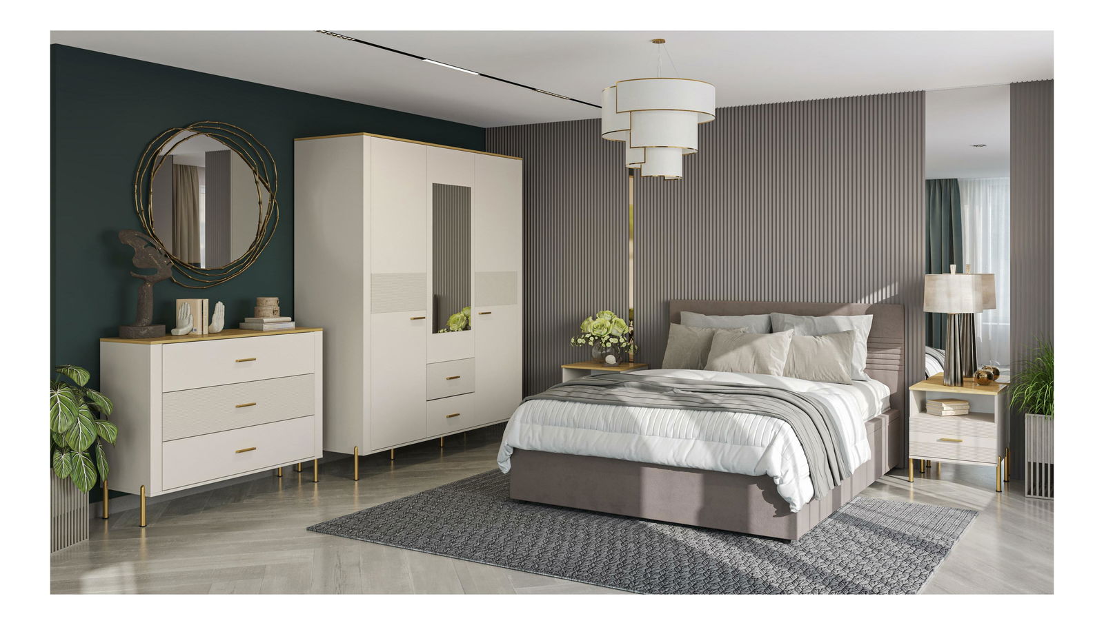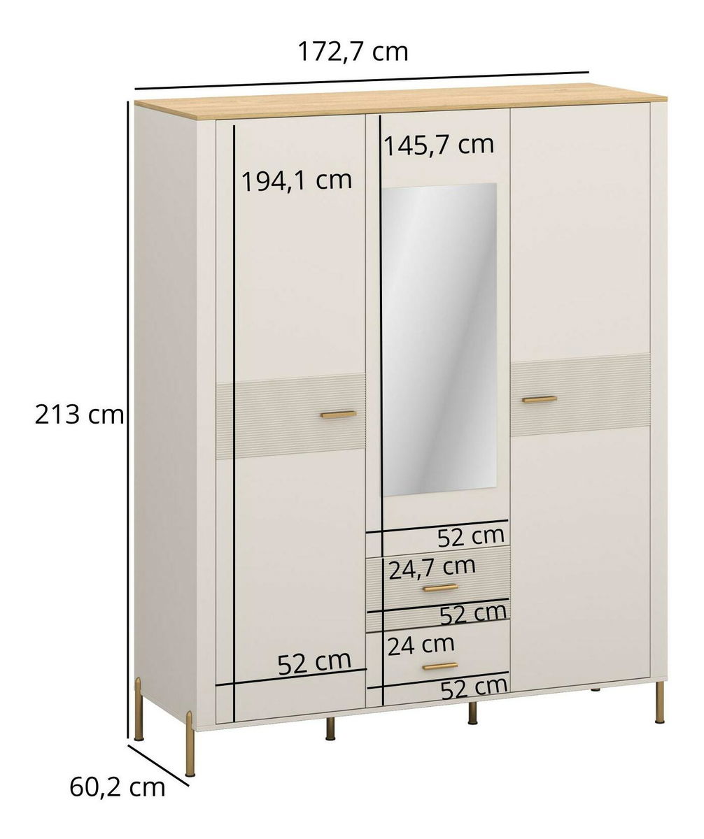 Ormar za garderobu Reiteradas (kašmir + kameni hrast) (s ogledalom)