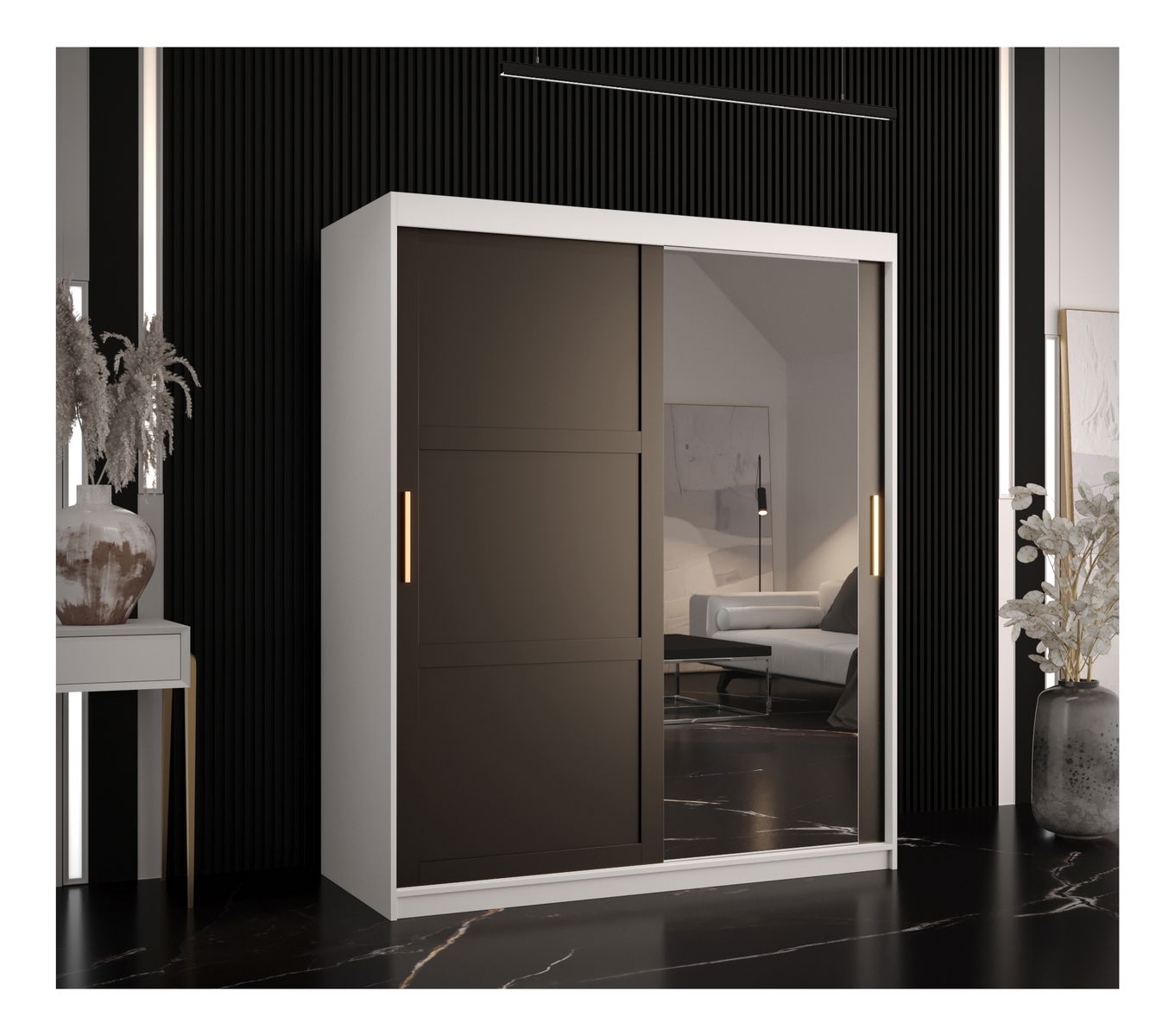 Ormar za garderobu Riven 2 150 (bijela mat + crna mat) (s ogledalom)