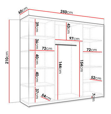 Ormar za garderobu s kliznim vratima Artaman 250 (bijela) (s ogledalom)