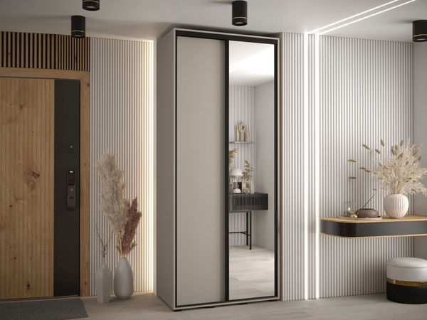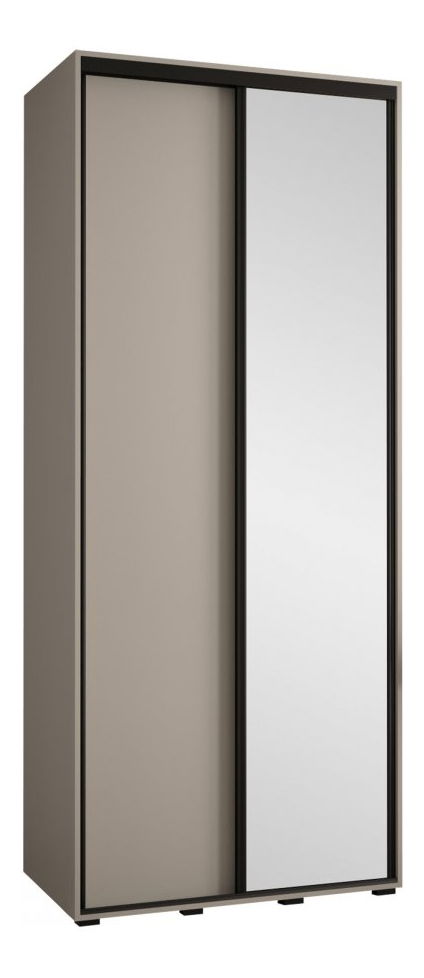 Ormar za garderobu s kliznim vratima Foktra 3 100 (kašmir + crna) (s ogledalom)