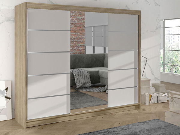 Ormar za garderobu s kliznim vratima Galiana VI (sonoma + bijela)