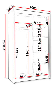 Ormar za garderobu s kliznim vratima Monata IV 100 (crna + bijela + zlatna)