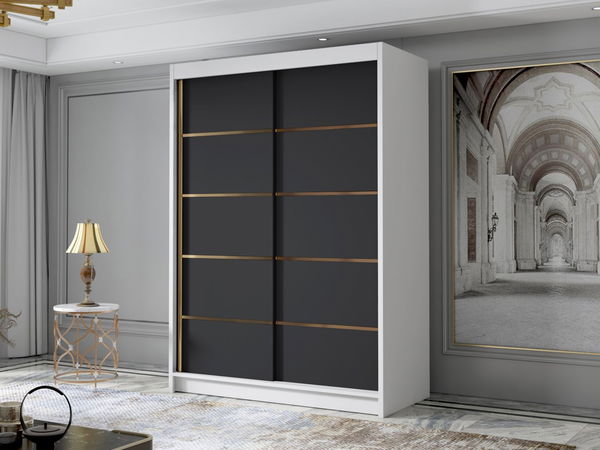 Ormar za garderobu s kliznim vratima Varentona IV 120 (bijela + crna + zlatna)