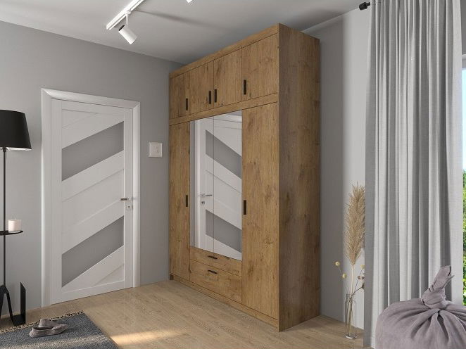 Ormar za garderobu s ogledalom Elanor IV (hrast lefkas)