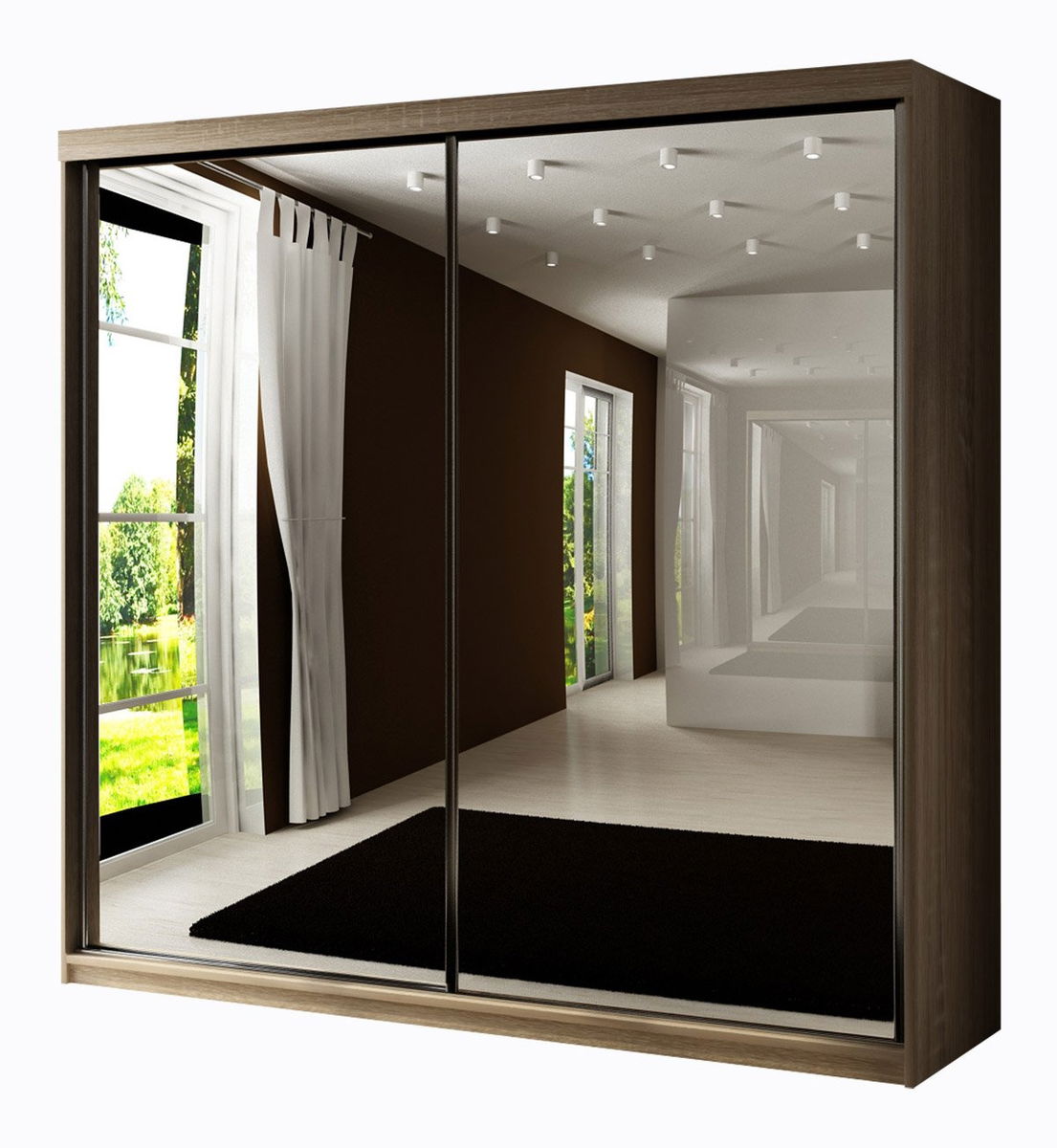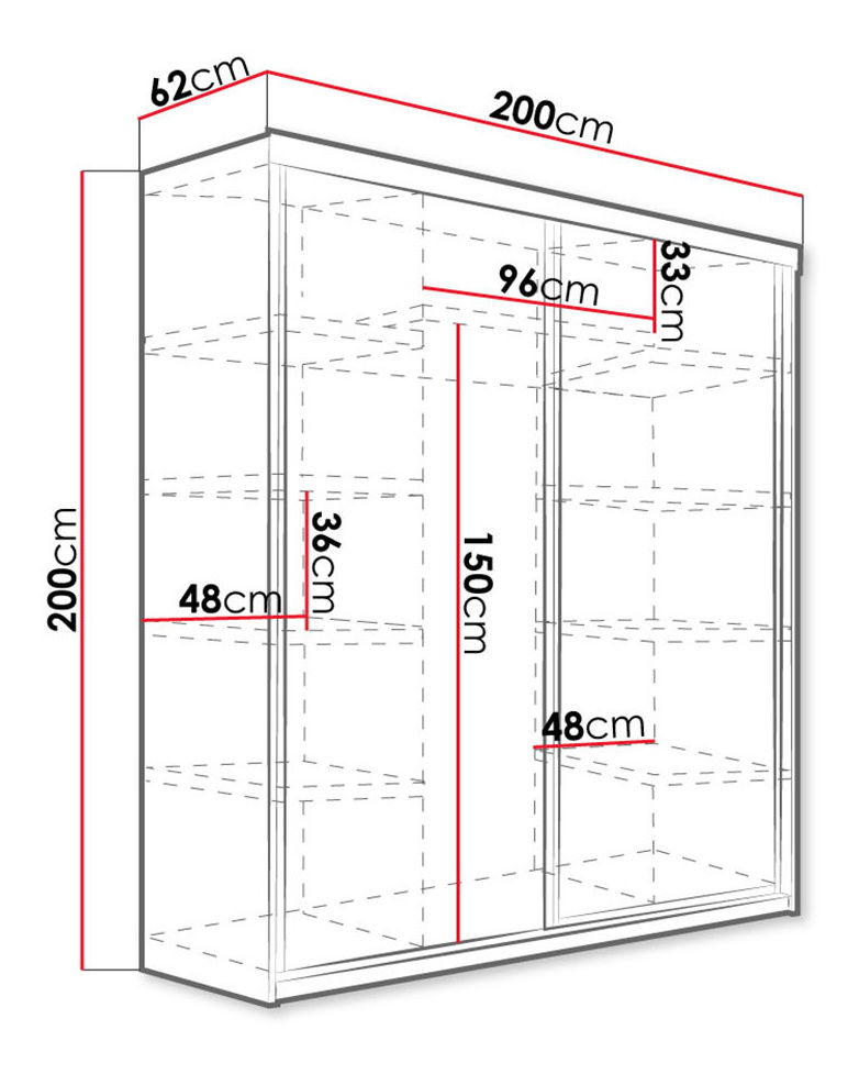 Ormar sa zrcalom je idealan izbor za one koji traže udobnost i stil. Ormar sa zrcalom Sahara 200 donosi red i harmoniju u dnevni boravak, spavaću sobu ili garderobu. Sjaj zrcala koja krase fronte ormara efektno će naglasiti stil vašeg interijera, a ima i funkcionalnu ulogu – optički će povećati prostor, dodati lakoću i svježinu prostoriji. Cijenite ne samo ljepotu ormara s kliznim vratima, već i praktične aspekte – unutrašnjost ormara ispunjena je prostranim policama i šipkom za odjeću. Promišljeno raspoređene zone za pohranu znače da ćete u njega smjestiti puno više nego u standardni ormar za garderobu. Dimenzije: širina: 200 cm, visina: 200 cm, dubina: 62 cm. Izvedba: laminirana iverica 16 mm, rubovi završeni PVC trakom, sustav kliznih vrata – aluminijski ležajevi, rubovi vrata završeni aluminijskim profilima koji sprječavaju savijanje vrata, visokokvalitetni okovi, šipka i police unutar, zrcalo sprijeda – na ploči od 12 mm zalijepljeno zrcalo debljine 3 mm (ploča na koju je zalijepljeno zrcalo nije identične boje kao ormar), LED rasvjeta kao dodatna opcija (u RGB verziji uključuje daljinski upravljač). Jamstvo: 24 mjeseca.