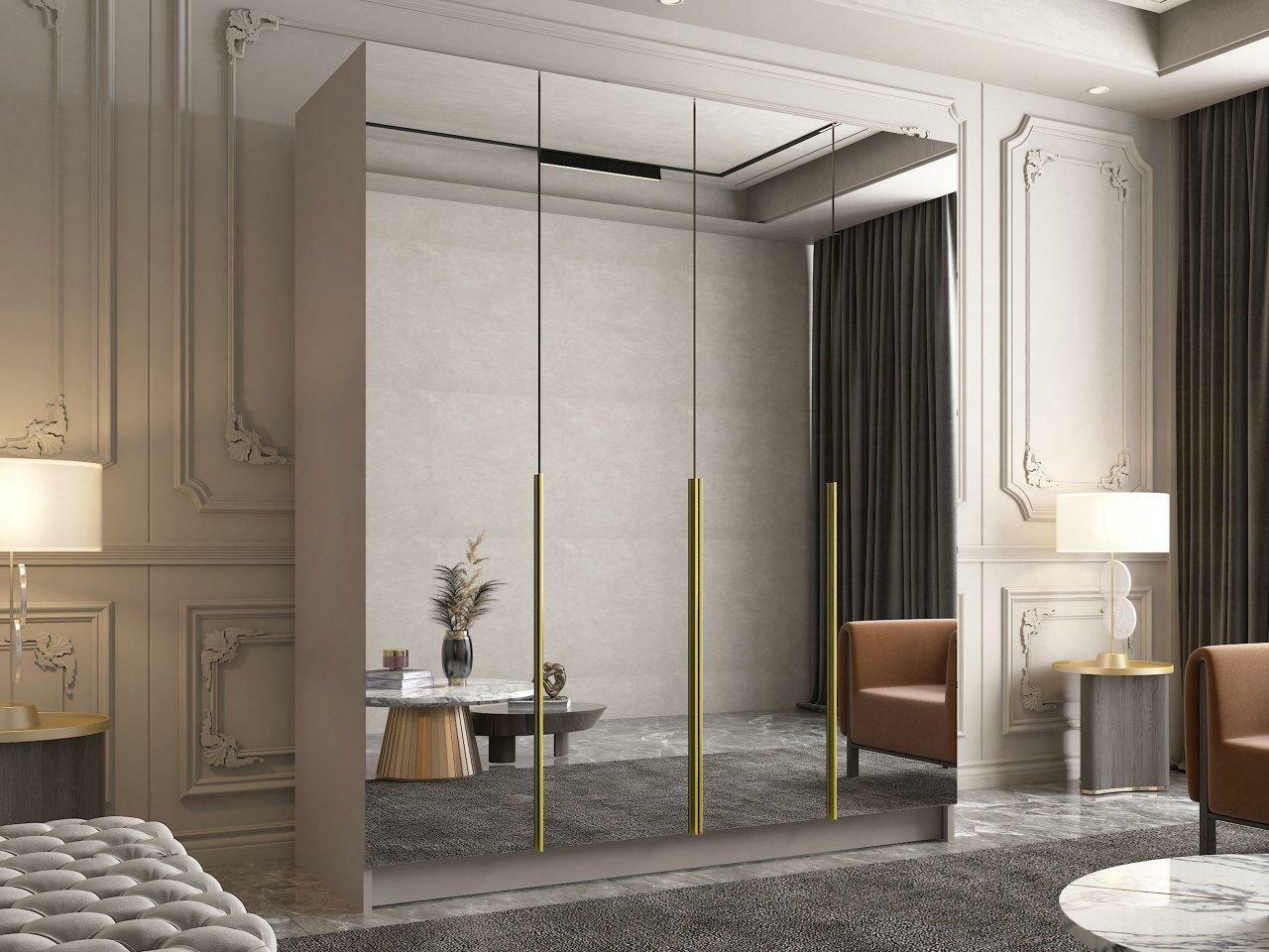 Ormar za garderobu Sezalos III (kašmir + zlatna) (s ogledalom) *Rasprodaja