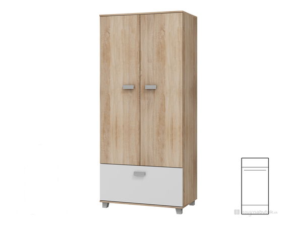 Ormar s 2 vrata o šipkom za vješanje odjeće. Na fotografiji dizajn hrast sonoma + bijela mat boja