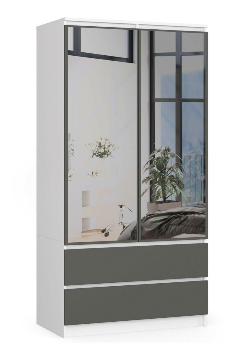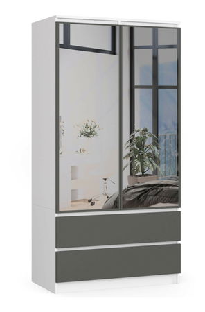 Ormar za garderobu Submarino (bijela + grafit) (sa ogledalom)
