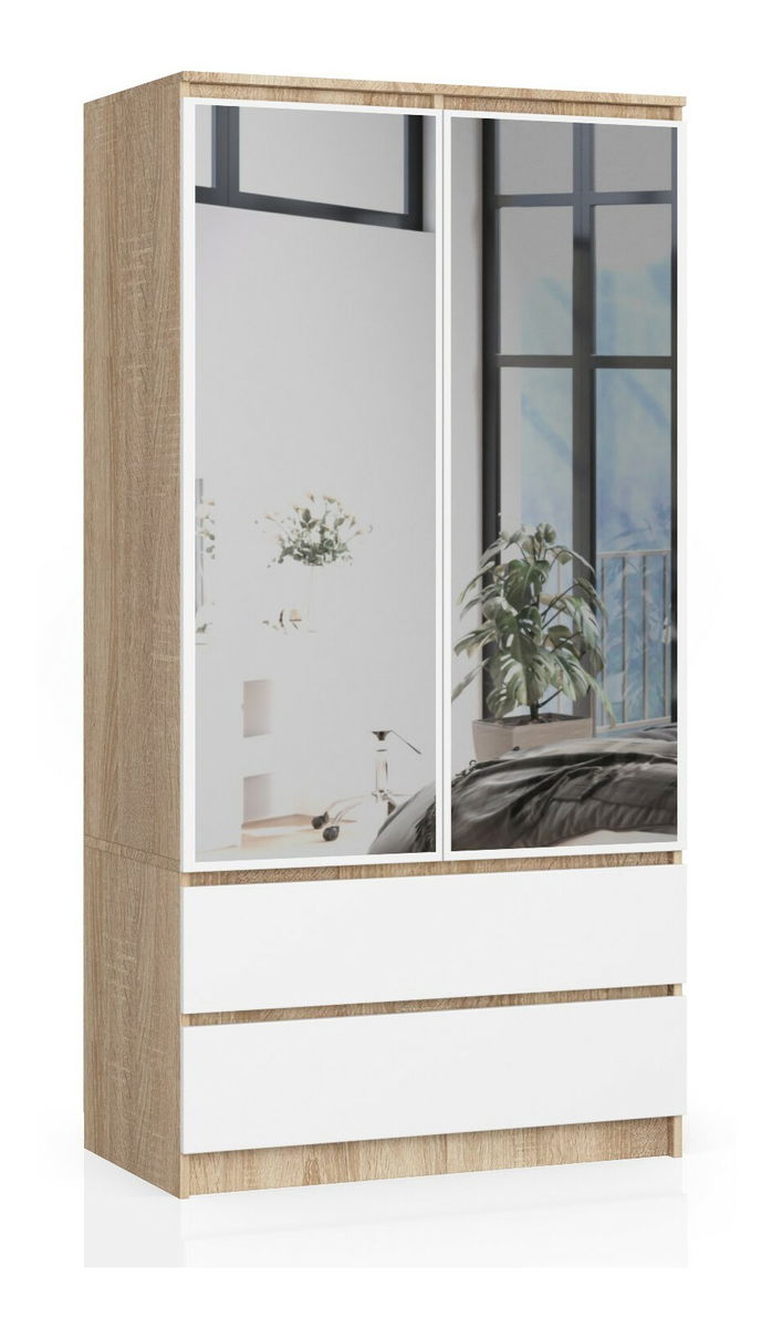 Ormar za garderobu Submarino (hrast sonoma + bijela) (sa ogledalom)