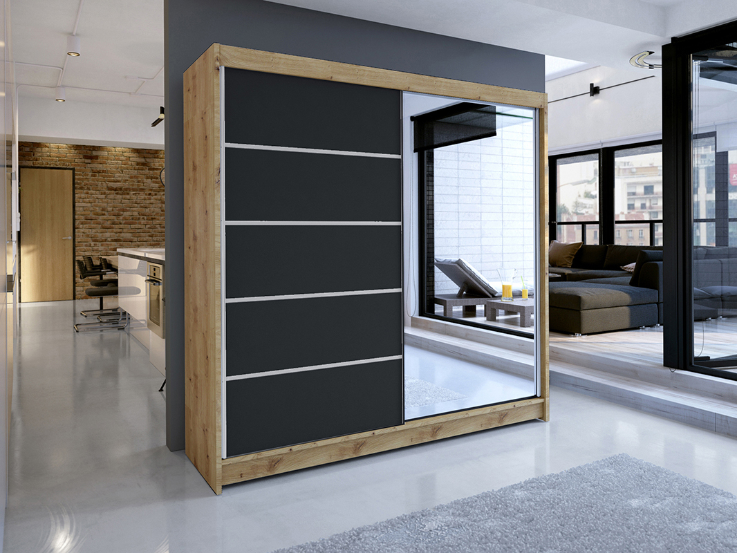 Ormar za garderobu Tatiana 3 (artisan + crna)