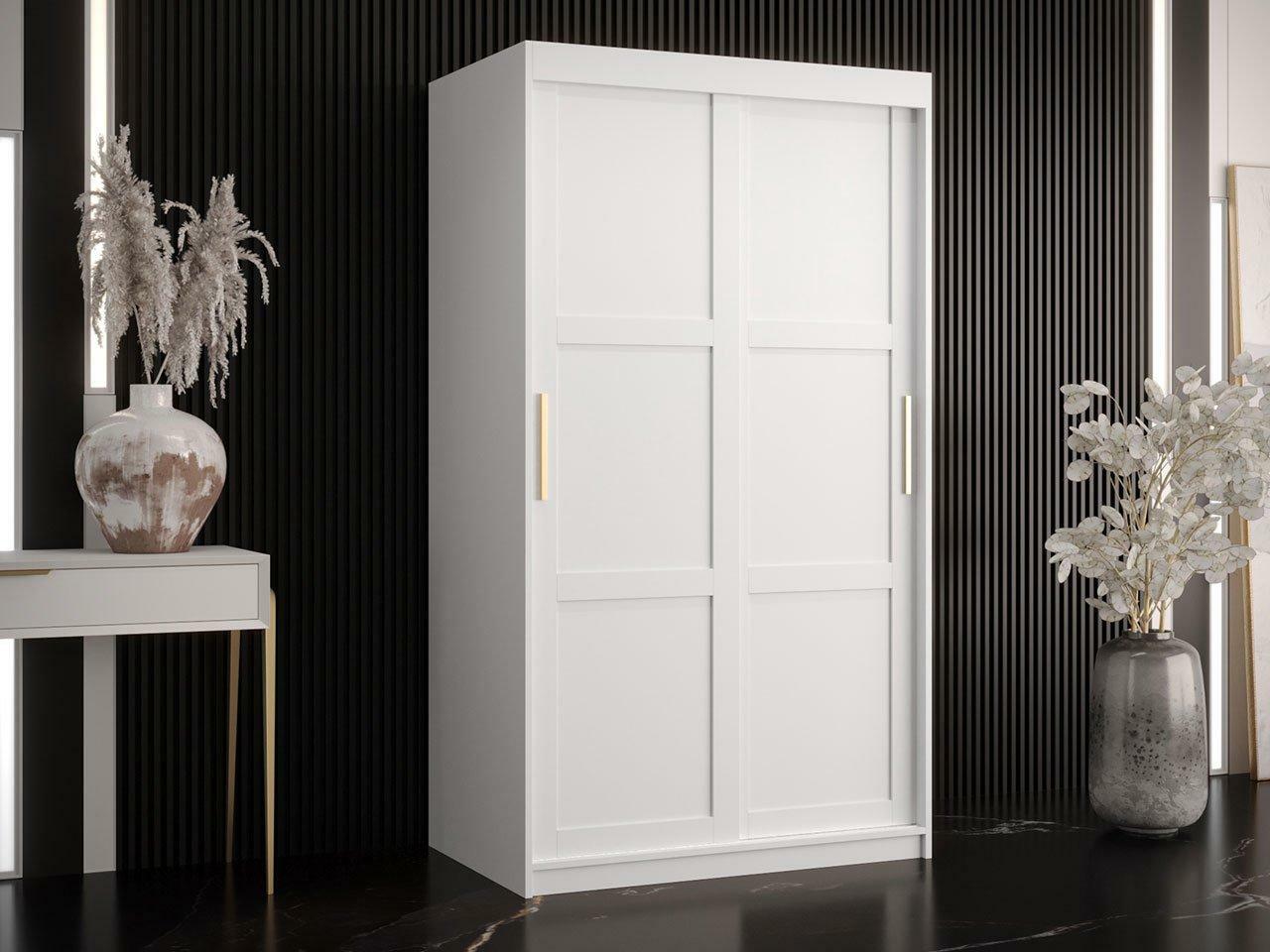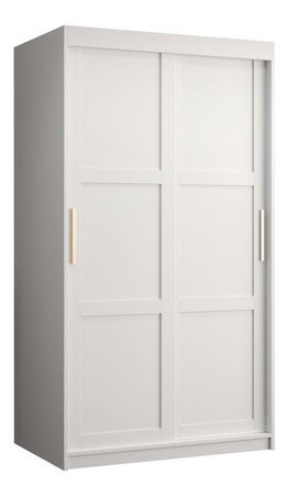 PrikazOrmar je idealan izbor za one koji traže udobnost i stil. Moderan ormar za garderobu s kliznim vratima Terospito 1 100 cm originalan je prijedlog za uređenje doma. Zahvaljujući svojim optimalnim dimenzijama savršeno pristaje u reprezentativni dnevni boravak. Zbog svog prostranog interijera cijenit ćete ga i u predsoblju, spavaćoj sobi i sobi za mlade. Simetrično raspoređena unutrašnjost pruža idealan prostor za odjeću. Na policama će svoje mjesto naći bluze, veste i polo majice. Vješalice će pak poslužiti kao baza za vješanje košulja, jakni i suknji. Dimenzije: širina: 100 cm, visina: 200 cm, dubina: 62 cm. Izvedba: korpus: 16 mm debela laminirana ploča, fronte: okvir od MDF-a i paneli od HDF-a, rubovi završeni PVC furnirom otpornim na oštećenja, klizna vrata na aluminijskim klizačima tvrtke "BIMAK", plastične ručke zlatne boje, unutrašnjost s policama i vješalicama za odjeću. Jamstvo: 24 mjeseca.