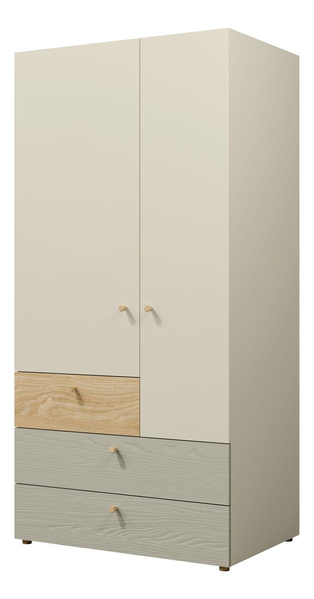 Ormar za odjeću Yoda 2 (svijetlo bež + uljani hrast + eukaliptus)