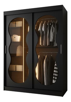 Ormar za garderobu Mebur 35 200 (crna + ogledalo + bijeli sjaj)