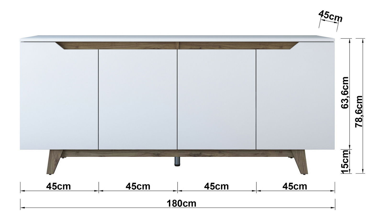 širina: 180 cm visina: 78,6 cm dubina: 45 cm